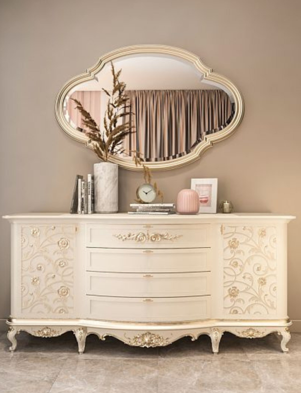 This stunning console features graceful curves and a luxurious Italian marble top, exuding elegance and sophistication. The flowing design adds a touch of artistry, making it a captivating focal point in any room. Perfect for blending style with functionality, this console elevates your décor with its timeless charm.